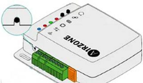 En el margen superior del aparato hay un botón, el cual está un poco escondido para no activarlo accidentalmente. Se puede acceder a el mediante la punta de un bolígrafo o similar.