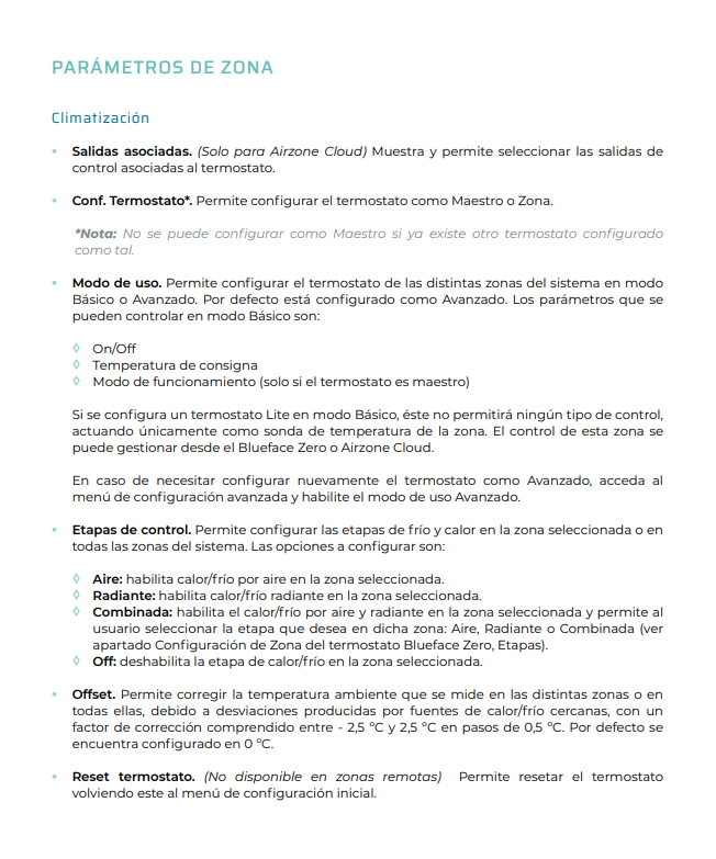 Parámetros de zona