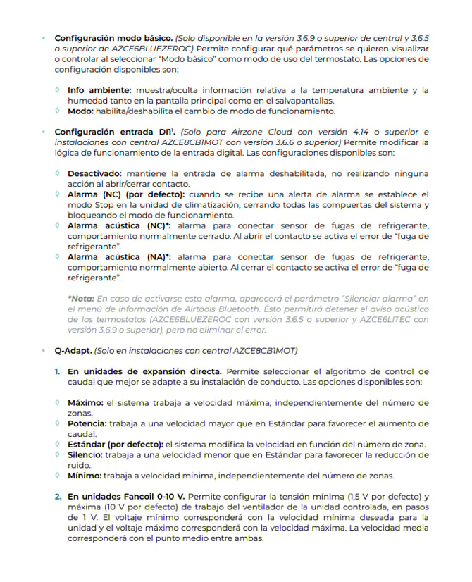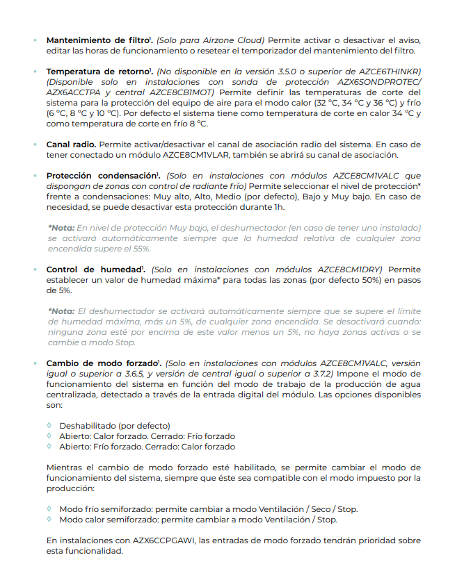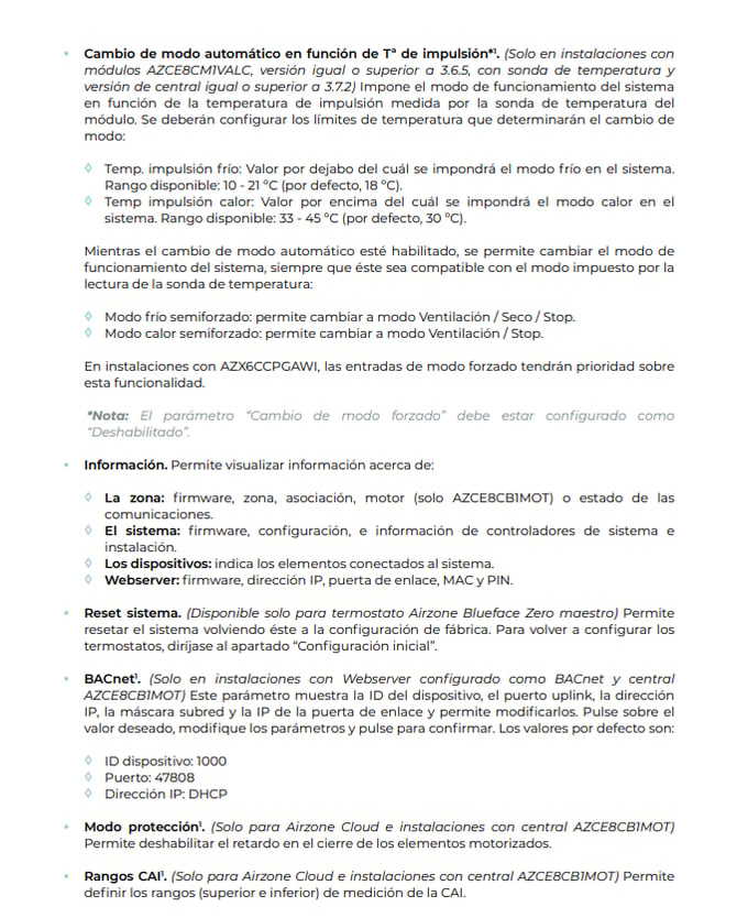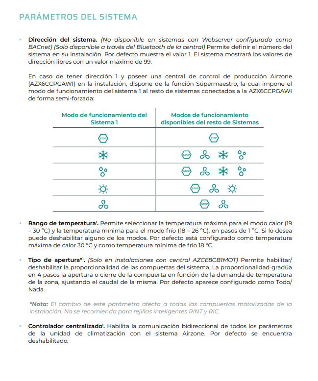 Aquí vamos a encontrar los parámetros del sistema más en profundidad.